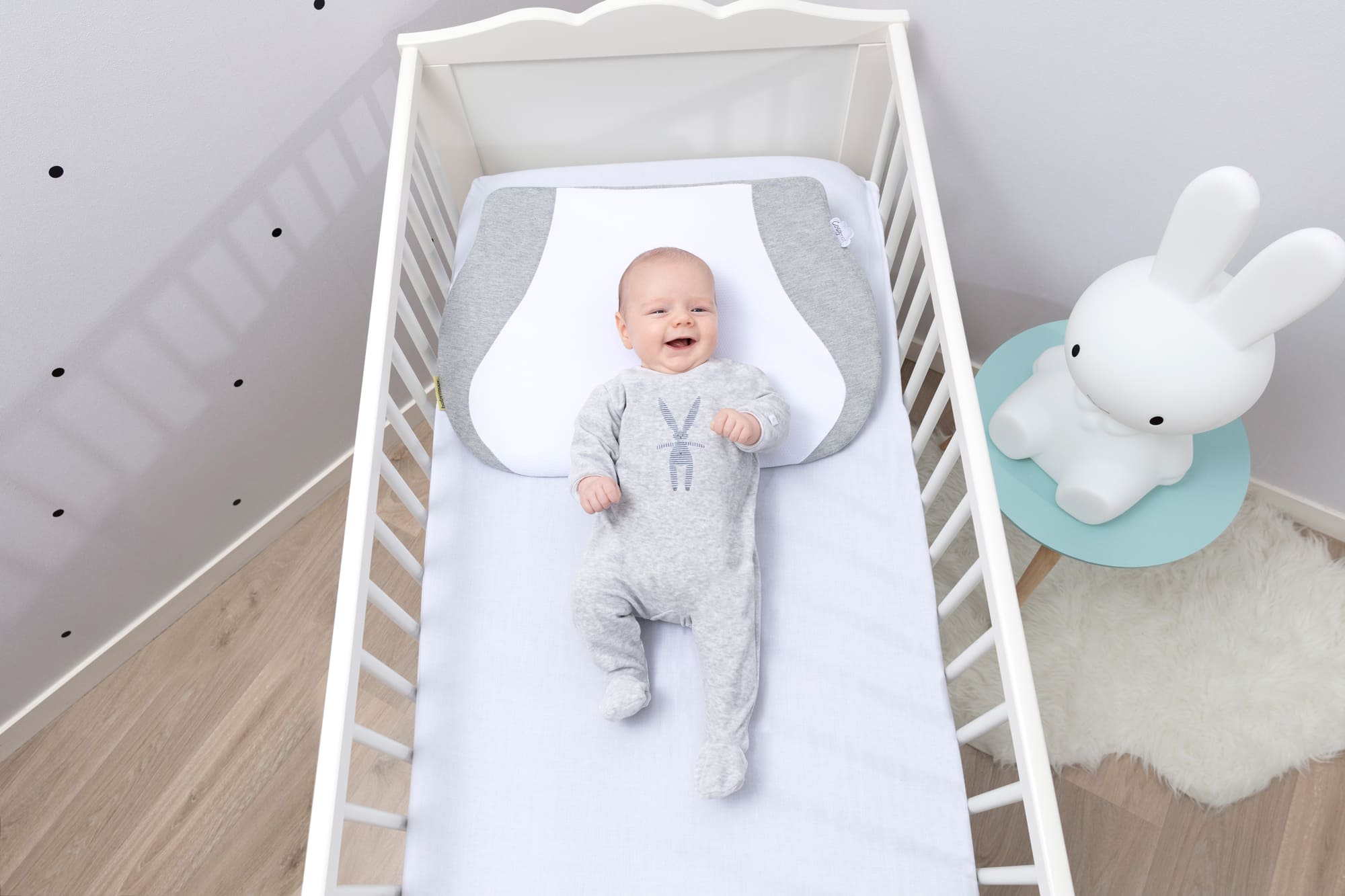 Su inclinación de 15° y su forma anatómica elevan cómodamente al bebé. Esta posición es ideal para facilitar la digestión, reducir los reflujos o despejar las vías respiratorias en caso de un fuerte resfrío. Es muy suave y microtranspirable.